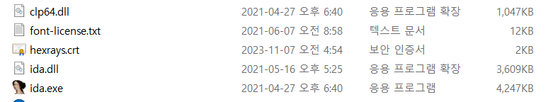 1번째로 lumen 사이트에서 제공하는 hexrays.crt를 다운로드 받고 IDA 루트 폴더에 저장합니다. (기존의 crt 파일은 백업해두거나 삭제하시면 됩니다.)