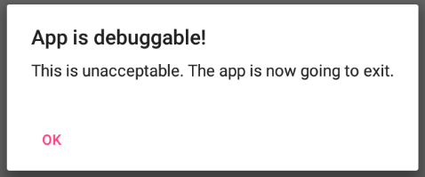 App을 실행하면 디버깅을 탐지하는 것을 확인할 수 있다.
