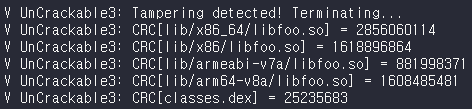 로그를 보면, verifyLibs()에서 봤던 "CRC[] = ???" 형태의 로그가 찍힌 것을 확인할 수 있다. CRC 체크를 수행하는 과정인 것 같다.