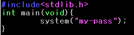 vi 에디터를 이용하여 my-pass 명령을 실행하는 코드를 작성했다.