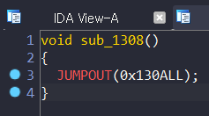 이 경우 &sub_1308+1를 호출하고 있습니다.