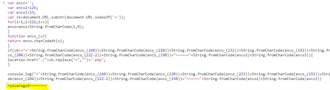 결과로 "=youaregod~~~~~~~!" 가 나온다.